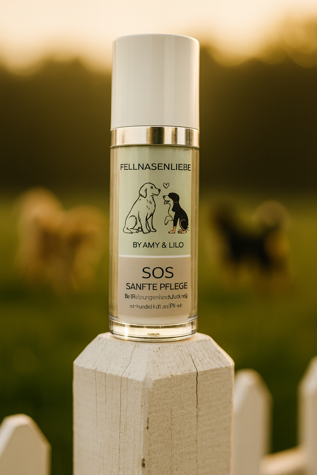 Die SOS-Creme ist unser kleiner Helfer für besondere Momente im Hundealltag. Sie pflegt empfindliche Hautpartien, kann Juckreiz nach kleinen Wehwehchen mildern und sorgt dafür, dass dein Vierbeiner sich wohler fühlt. Ob nach einem langen Spaziergang, einem Insektenstich oder kleinen Abenteuern – mit Liebe entwickelt und inspiriert von Amy & Lilo.